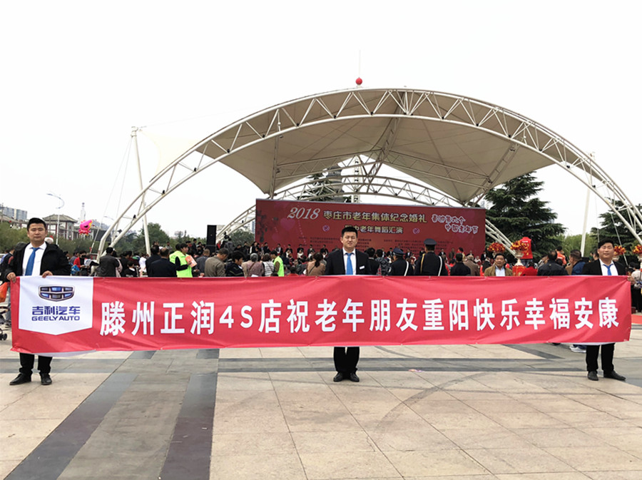 滕州正潤吉利4S店提供了6輛試乘、試駕車作為婚車參加了此次活動,負責接送婚禮老人、體驗試乘以及老年車模紀念留影等。